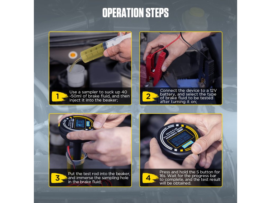 Tester bodu varu brzdové kapaliny AS506 je profesionální nástroj pro přesné stanovení skutečné hodnoty bodu varu brzdových kapalin s cílem odhalit dopad přítomnosti vody na jejich vlastnosti. Je určen pro autoservisy, STK a profesionální kontrolu kvality, ale efektivně poslouží i zkušeným jednotlivcům.