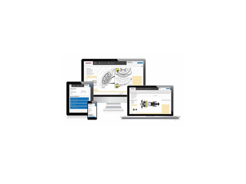 Anglická verze - technické údaje pro servis evropských, asijských a amerických motocyklů, skútrů, čtyřkolek a off-roadů.