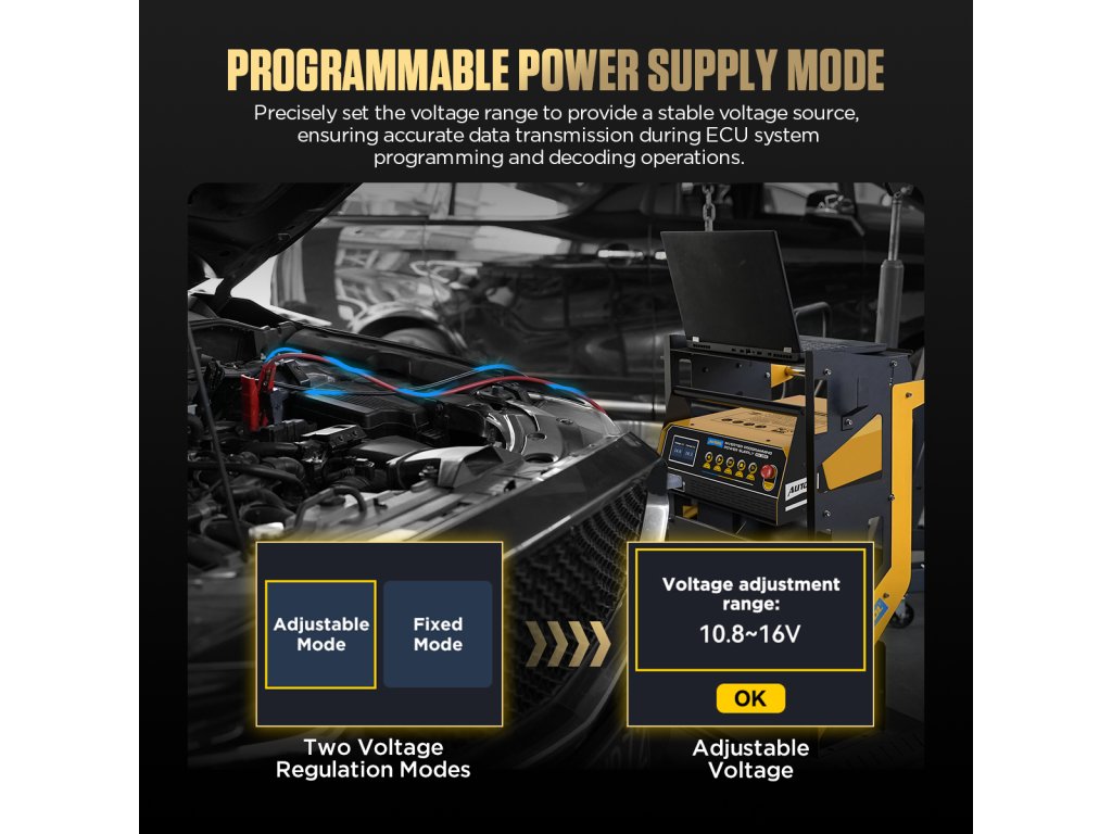 - Programování a stabilní napájení ECU během softwarových úprav (flashování, kódování)