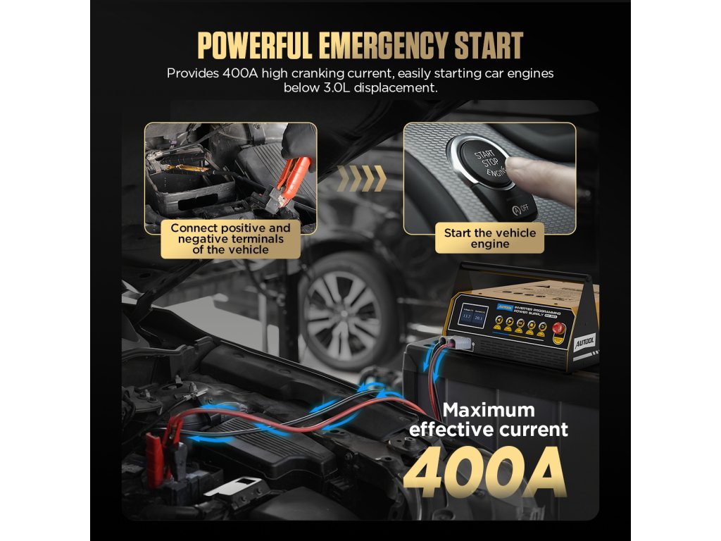 - Výstupní proud (startovací/napájecí): 400?A/12?V (start), 150?A (program. napájení)