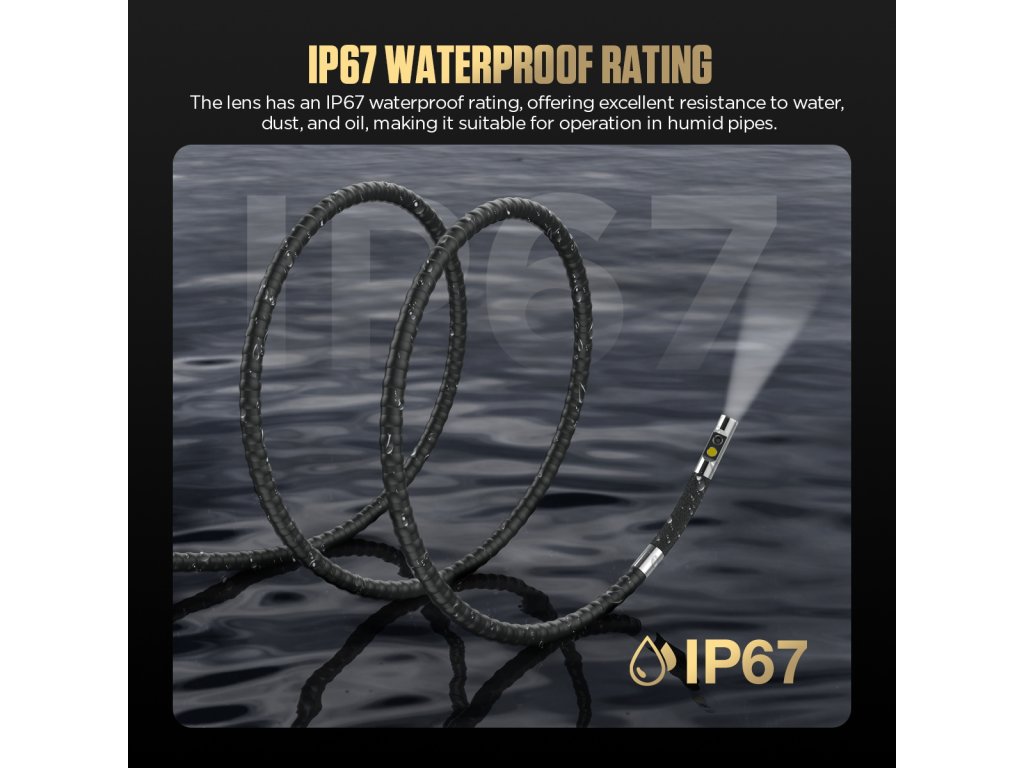 Průměr objektivu 6,5 mm a maximální úhel vychýlení 210° umožňují snadný pohyb v úzkých a zakřivených prostorech. Ideální pro kontrolu výparníků, spalovacích prostorů, katalyzátorů a dalších částí vozidla.