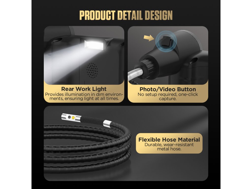 AUTOOL SVB403 je profesionální diagnostická kamera s dvojitou Ultra HD kamerou, obousměrnou artikulací 210° a tenkou sondou o průměru 6,5 mm. Umožňuje rychlou a nedestruktivní kontrolu motorů, potrubí a dalších těžko přístupných míst. Vestavěný 4,3" HD displej, 8× optický zoom a odolnost IP67 zajišťují spolehlivé použití i v náročných podmínkách.