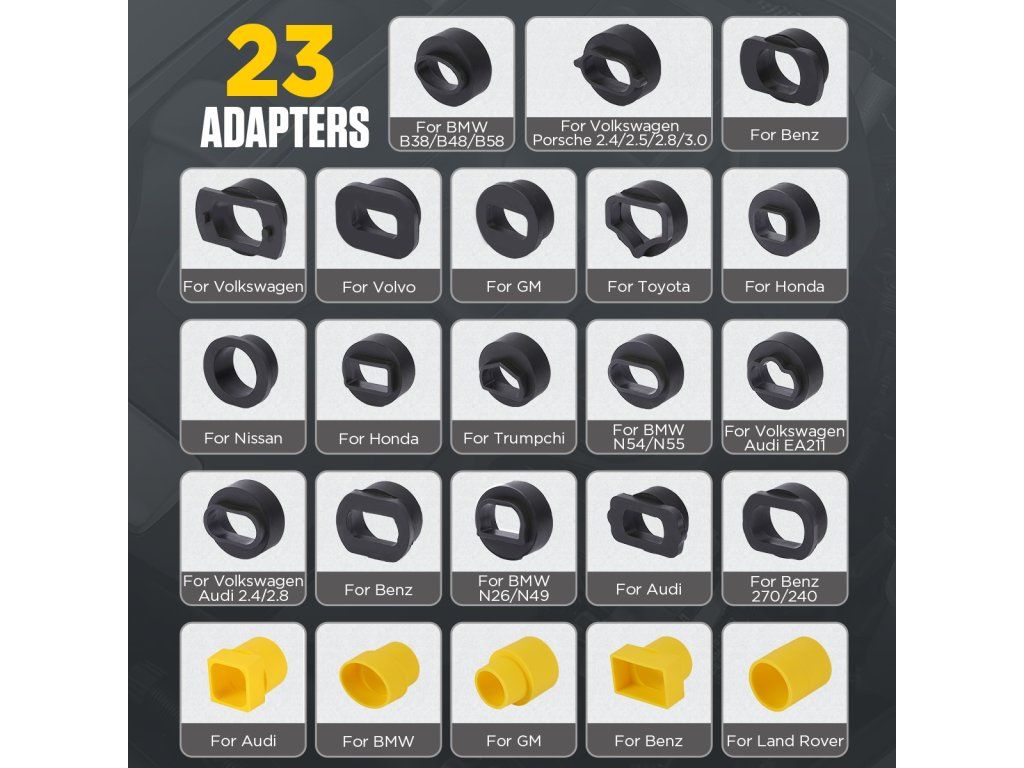- Počet adaptérů: 23 ks (pro různé značky a typy motorů)