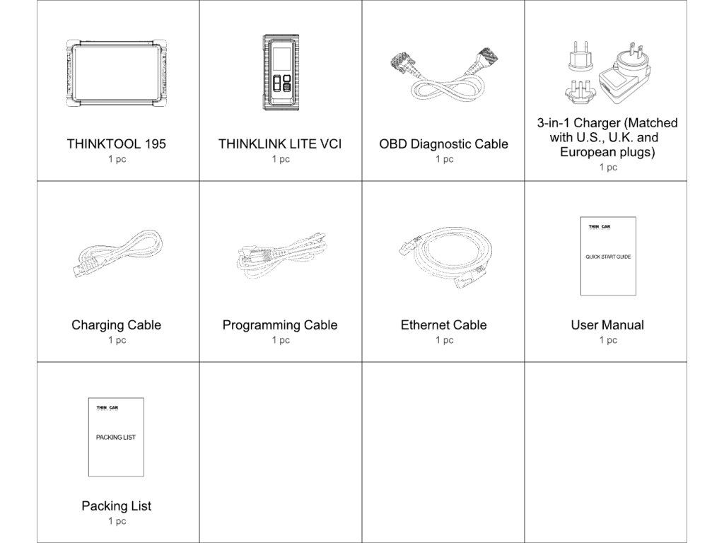 THINKTOOL Euro 195 podporuje 220 značek automobilů po celém světě, včetně osobních, užitkových a hybridních vozidel. Pracuje s napětím 12V a podporuje český jazyk.
