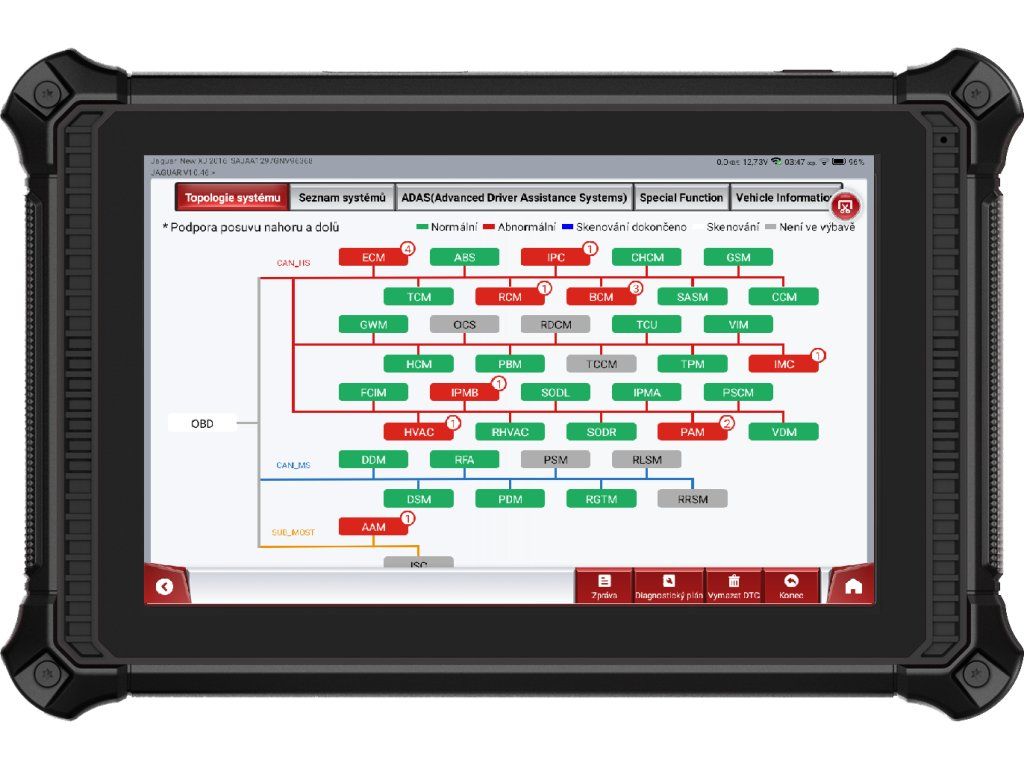 Účinnost diagnostiky: Technici mohou přistupovat ke konkrétním řídicím jednotkám přímo z pohledu topologie a provádět diagnostické testy nebo zobrazit další podrobnosti.