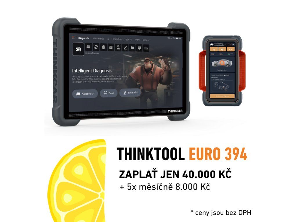THINKTOOL EURO 394 je špičkový profesionální diagnostický nástroj s 12” displejem a podporou více než 150 značek vozidel. Jako první diagnostika s umělou inteligencí (AI) poskytuje rychlé a přesné výsledky. Podporuje moderní protokoly, včetně CAN 2.0, a je připraven na diagnostiku elektrických a těžkých nákladních vozidel. S 256GB úložištěm, dlouhou výdrží baterie a 2 lety aktualizací zdarma je ideální pro pokročilé servisy.